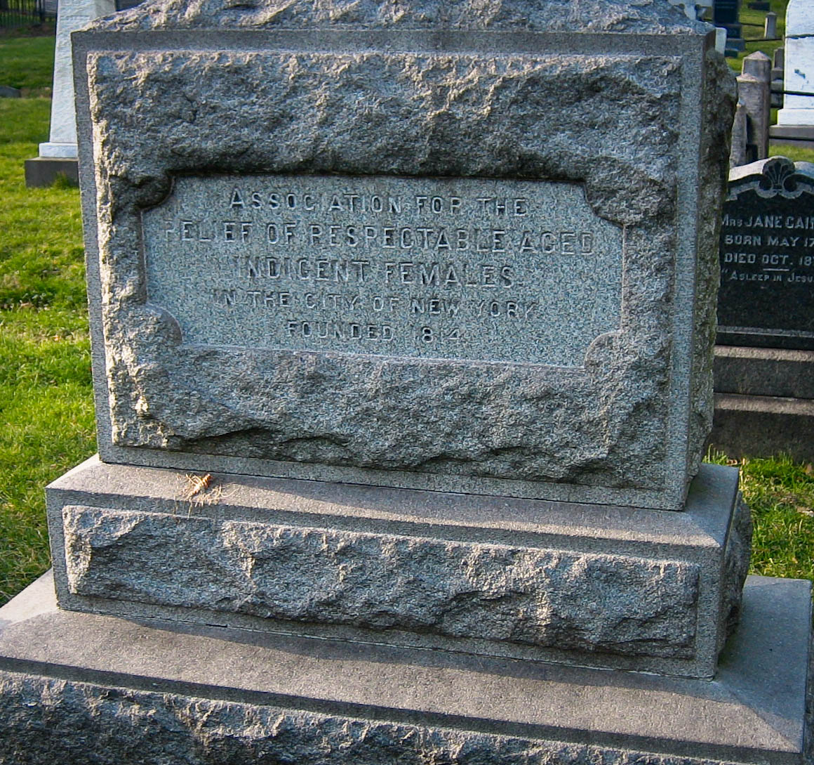 1. Congrats on the wonderful new blog! Pam Tice’s article spoke to me right off. I regularly pass by the wordy organizational name of the Association for the Relief of Respectable Aged Indigent Females some 50 blocks farther uptown. At 153rd Street between Amsterdam Avenue and Broadway, the Easterly Division of Trinity Church Cemetery contains a hefty stone grave marker dedicated to this venerable organization. The burial plot resides among those of numerous 19th-century eleemosynary institutions that once conferred their dead to these grounds. I look forward to reading more posts!