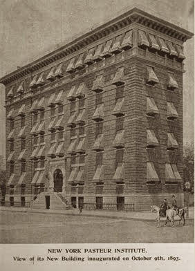 By 1893 Dr. Gibier opened a five-story brick building at the corner of Central Park West and 97th Street, pictured here. Soon the Pasteur Institute was treating patients from all