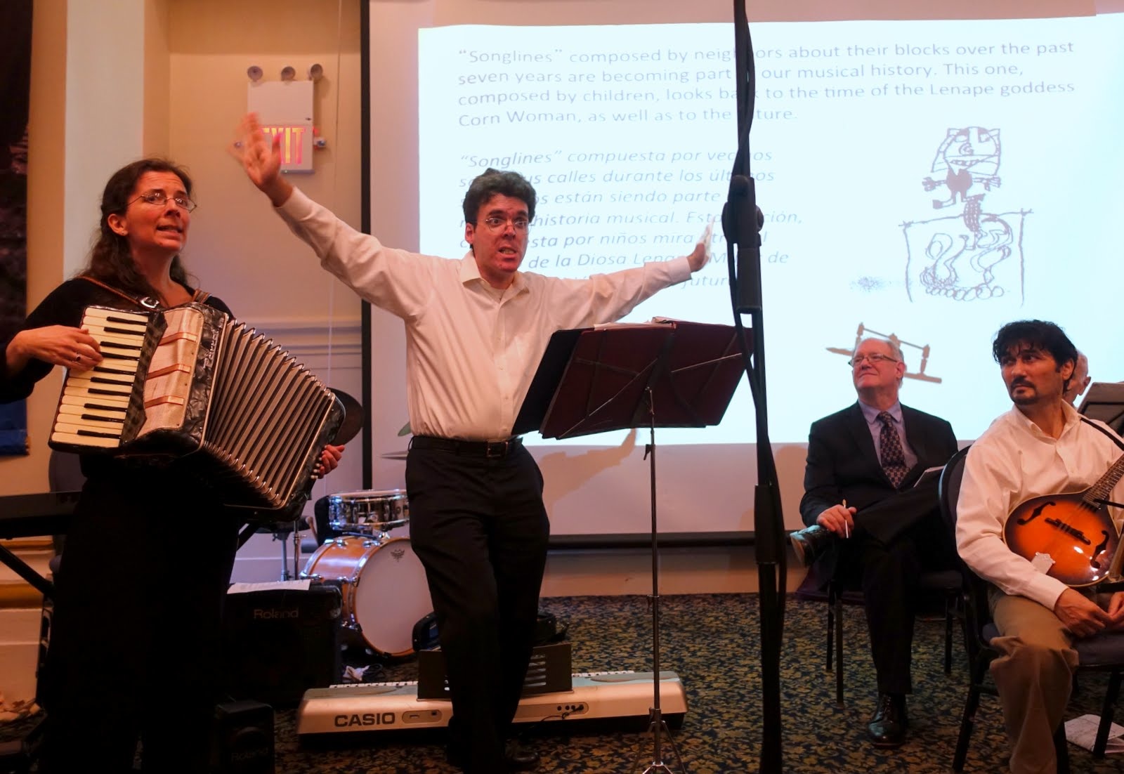 Buskers, outdoor concerts, and music festivals have long enlivened sidewalks, subway stations, parks, community gardens, farmers’ markets, & city streets. Riverside Clay Tennis Association’s Sunset Concerts feature music from all over the world. The New York Gilbert and Sullivan Players made their debut in Straus Park in the early 1970s. Jazz has become a tradition on the Great Hill in Central Park since the 1990 celebration of Charlie “Bird” Parker’s birthday. Thomas Delaney made an impression playing the blues outside his apartment building in 2005 after a fire kept him and his neighbors from home for months. What a Neighborhood! was founded in 2003 by brother and sister Ishmael and Vita Wallace to celebrate the creative spirit in the area primarily through the music of living local composers. One of their projects, with composer Elizabeth Adams, has been to encourage neighbors to write songs about their blocks (“songlines”) and to sing them as they walk.