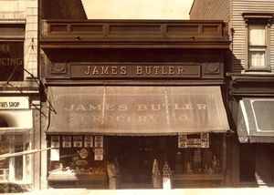 James Butler owned 43 stores by 1914; in 1898 he had three on Columbus at 620, 702, and 754, and one at 774 Amsterdam. In the early 1880s, Mr. Butler had invested his $2000 life savings in a grocery store on Second Avenue in Manhattan. The number of stores grew; when Butler died, he was worth $30 million, and had more than 1,100 stores, second only to the A & P. He too considered his shops as catering to “the carriage trade”; his locations on Columbus and Amsterdam were meant to serve the families living on Central Park West and west of Broadway.