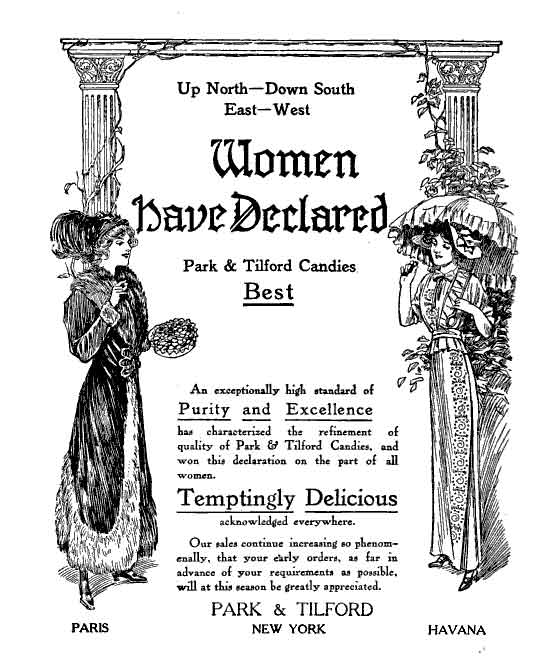 Park & Tilford provided “first class groceries.” Besides many imported gourmet foods, they sold wines, confectionaries, cigars and personal items.