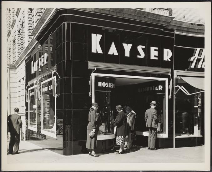 All of these mentions show the variety of shops meeting the personal needs of the Bloomingdale residents. An important supplier was Kayser’s shown in the photo below in their 1937 Art Deco form with a new kind of black glass. This store was on Broadway at West 83rd Street. Julius Kayser founded his silk glove company in 1880, and, by 1911, it had grown to silk gloves, hosiery and underwear — and patent leather gloves also. After Mr. Kayser’s death in 1920 the company grew and lasted into the 1960s, absorbing numerous other companies that made these items.