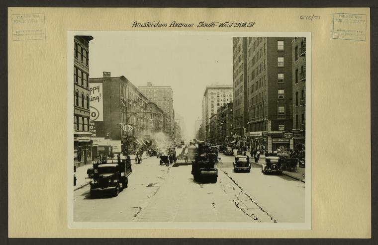 Something we don’t see in the streetscape today: there was a gas station on Amsterdam Avenue at 90th Street, as shown in this 1936 photo.