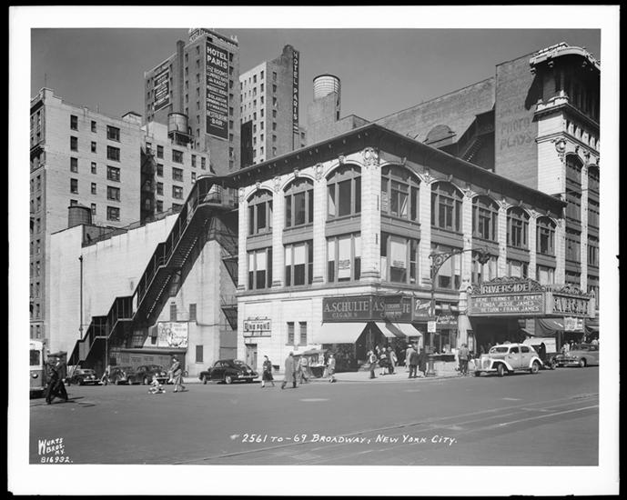 In every neighborhood, the cigar store was ubiquitous. Initially there were United Cigar Stores and D. A. Schulte stores, one of those pictured here, next to the Riverside movie theater. There was another store at Broadway and 85th Street, as reported in a news story of a 1928 robbery.