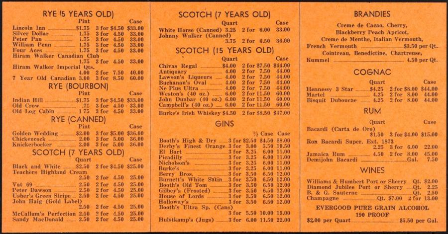 Shopping list for liquor sales from folder at the Museum of the City of New York. inside page