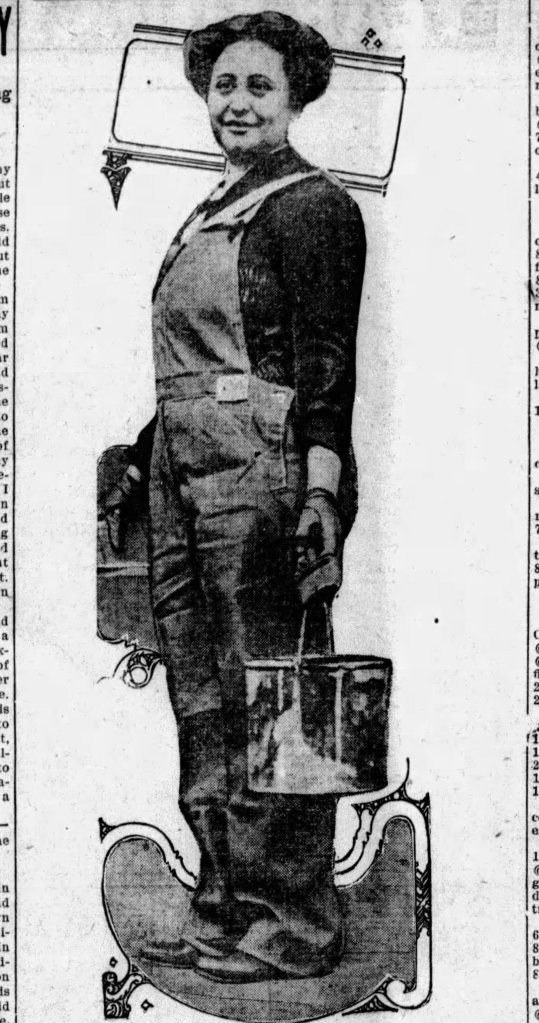 By late 1912, the local political clubhouse for women, under the direction of Mrs. Kremer, was called the Interborough Suffrage League, located at 227 West 83rd Street. Mrs. Kremer’s photograph was splashed across the country by the newspapers when she and two friends decided to paint the clubhouse themselves after the landlord refused. She purchased “69 cent blue coveralls” which provided a great attraction, feeding on men’s fears that women who voted were both losing their femininity and taking on men’s tasks. The women commented that the coveralls were so practical, that they expected to wear them for all sorts of household duties.